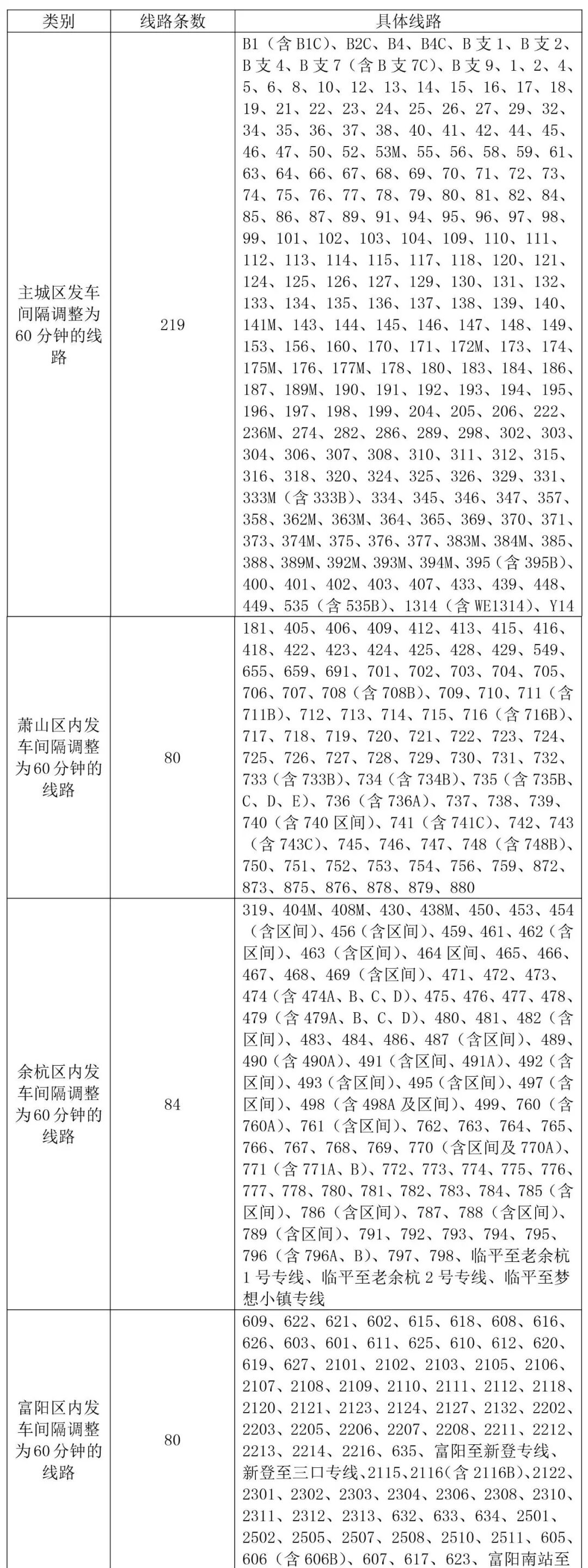 1、连接火车东站、城站火车站的 43 条常规线路,发车间隔调整为 30 分钟,首末班时间不变。