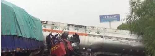 事故造成刘某当场死亡,三人受伤,三车受损,其中一辆江西号牌的重型半挂牵引车,装载的丙二醇部分泄漏,所幸丙二醇没有危险。