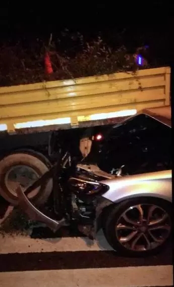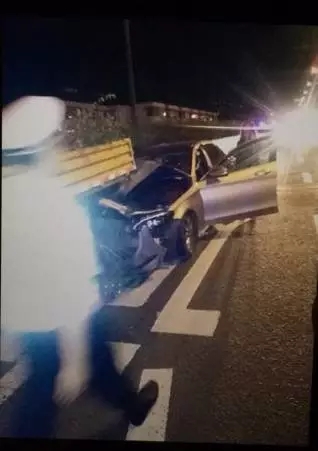 昨天凌晨2点多钟,一辆在上塘高架急行的奔驰车,一头撞上了正在路面施工的货车。这一撞够猛,不仅奔驰车几乎报废,工程车上作业的工人也摔落下来,被紧急送往了医院救治。
