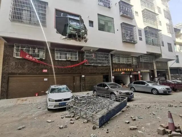 记者了解到,事故发生于今天下午两点左右,事发时房屋及楼下停靠的两辆车里都没有人,幸而未造成人员伤亡。
