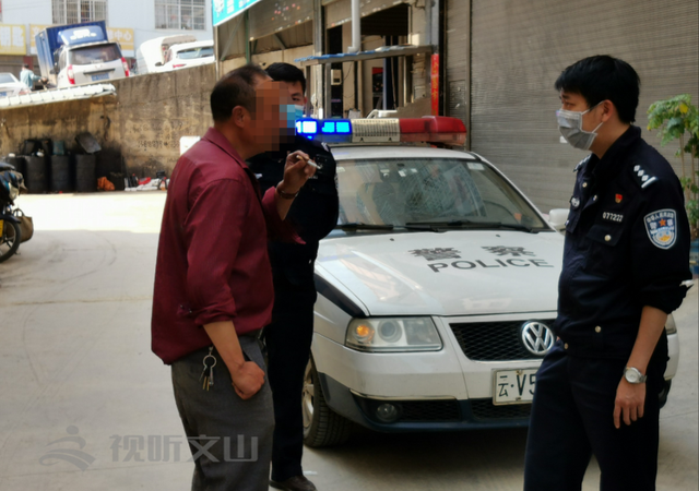 文山市公安局交警大队的民警正在现场对事故进行处理。