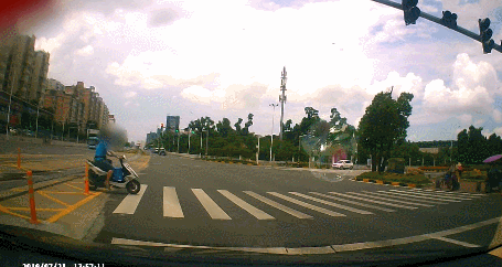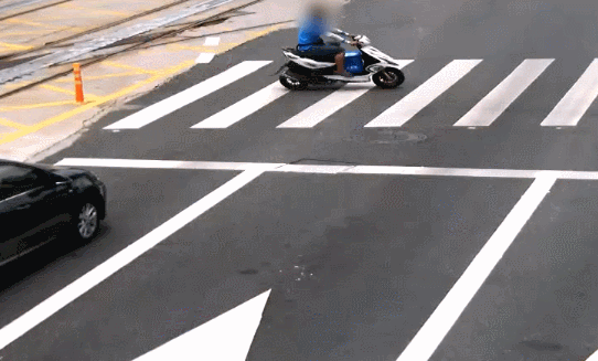 1秒后,马自达小车冲进路口,在斑马线位置和摩托车相撞。▼两段触目惊心的视频均显示,小马的违法行为很明显,冲红灯过斑马线,而且驾驶无号牌摩托车,没戴安全头盔。请看行车记录仪完整视频▼