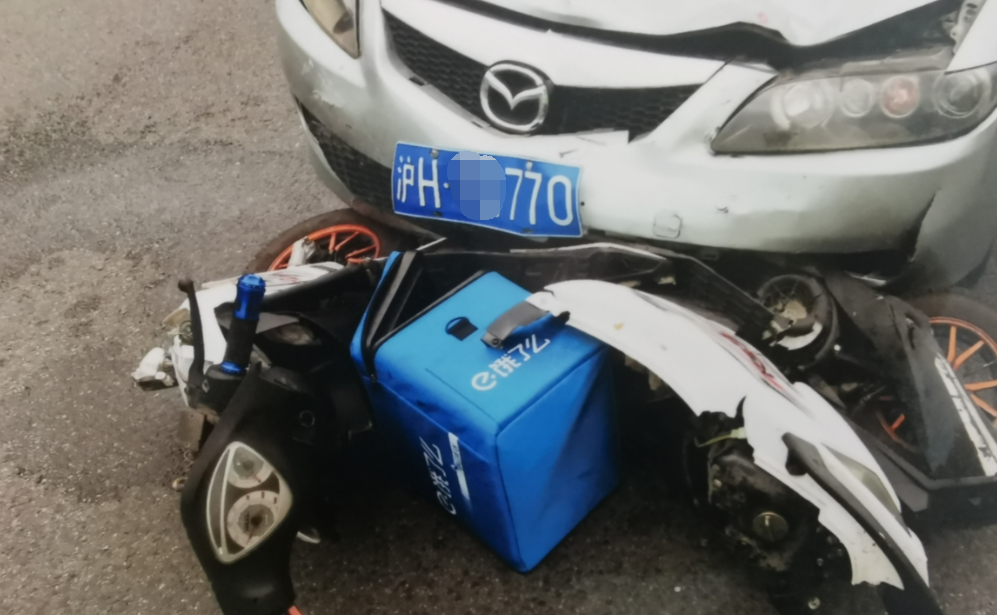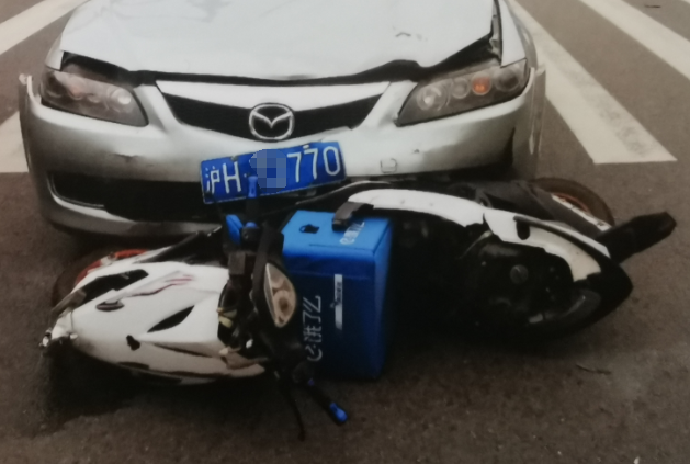 他穿着蓝色工服,骑摩托车在梅华路附近飞驰,准备去附近居民区送餐。▼而此刻,香洲的李女士也正奔忙在路上。她忙了一上午,想带儿子赶回家休息一下,下午再送儿子去补习班。眼看快到一点了,中午的时间所剩无几。如果孩子休息不好,下午上课肯定没精神。李女士驾驶沪H××770号灰色马自达小车从新香洲心华路右转进入梅华路,然后在左侧第二车道行驶。▼