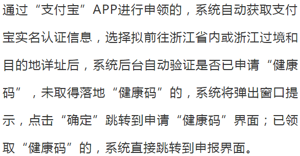 凡是通过高速公路入浙的人员,首先需通过“支付宝”APP在线申请浙江健康码(所在城市+健康码)。