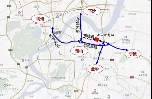 ①机场高速-西兴大桥/九堡大桥/庆春路隧道/望江路隧道;②萧山收费站-鸿达路-庆春路隧道。