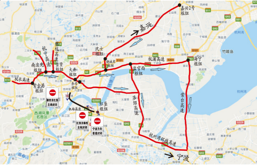 从杭州高速交警获悉,因2020年5月10日0时起S2沪杭甬高速乔司枢纽-红垦枢纽将进行断流,受其影响G2504杭州绕城高速公路红垦枢纽嘉兴往萧山机场方向匝道(F匝道)、绍兴往嘉兴方向匝道(B匝道)禁止通行。