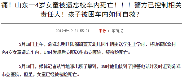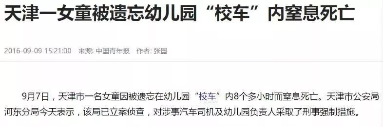 而另据媒体报道,仅去年7月左右,河北连发四起幼儿园校车遗漏幼儿致死事故,事发地分别在保定、唐山、石家庄、廊坊。